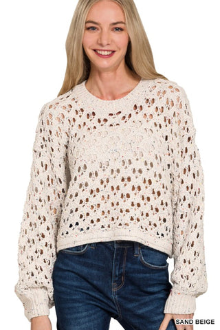 CROPPED CROCHET KNIT SWEATER