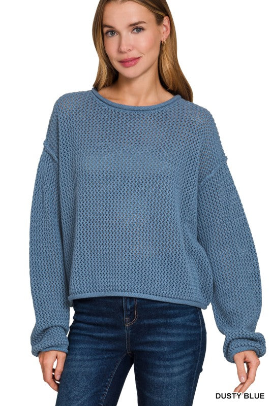 TEXTURED KNIT DROP SHOULDER SWEATER TOTAL BODY LENGTH: 18.5", CHEST: 51" approx. - MEASURED FROM SMALL * COLOR MAY VARY SLIGHTLY DUE TO MONITOR RESOLUTION