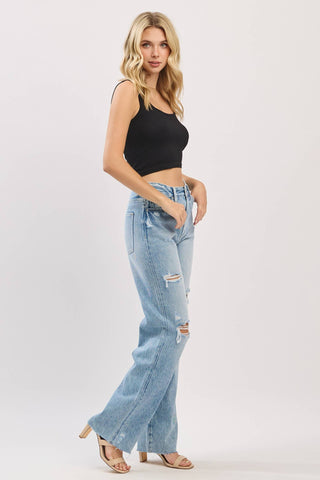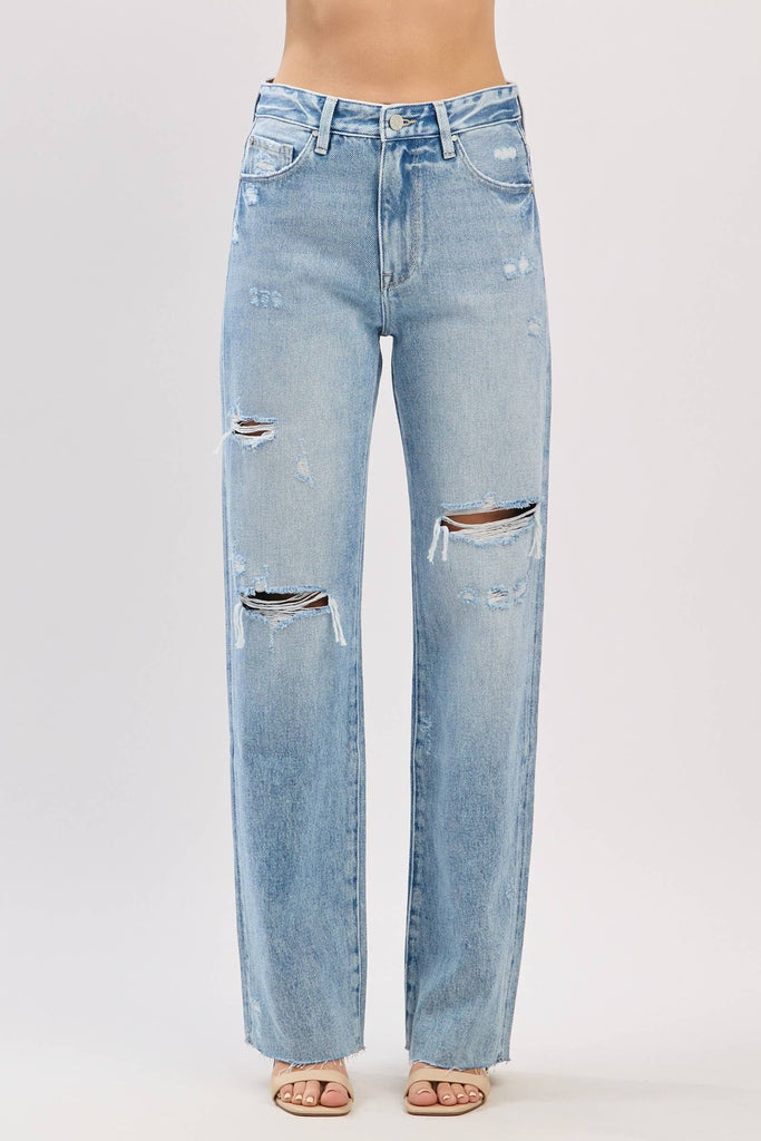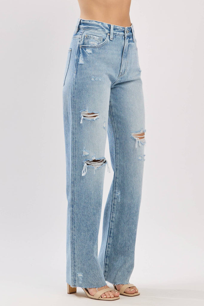 DISTRESSED HIGH RISE RIGID VINTAGE STRAIGHT