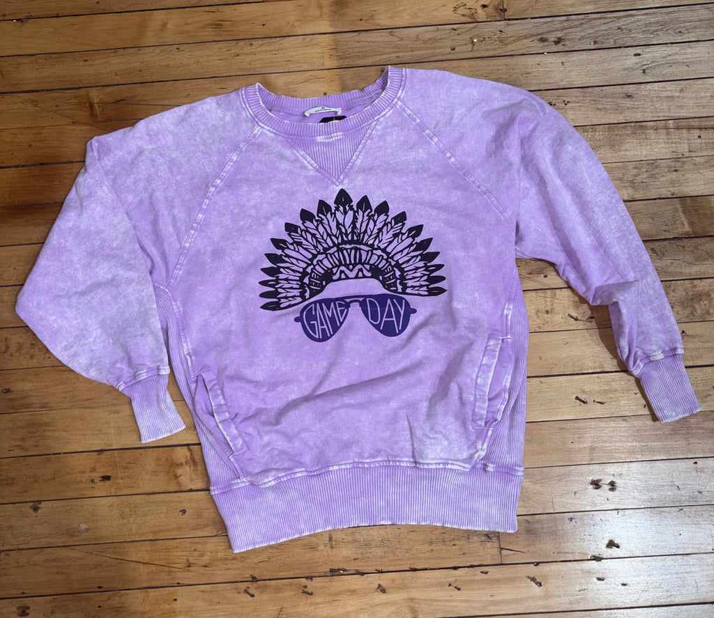 Acid wash Game Day Glasses Indian Pullover