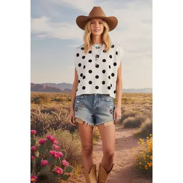 Polka Dot Sleeveless Knit Sweater Top