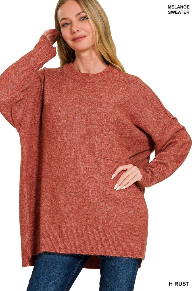 Melange Hi-low Hem Pocket Sweater - Soft Sweater - Midweight