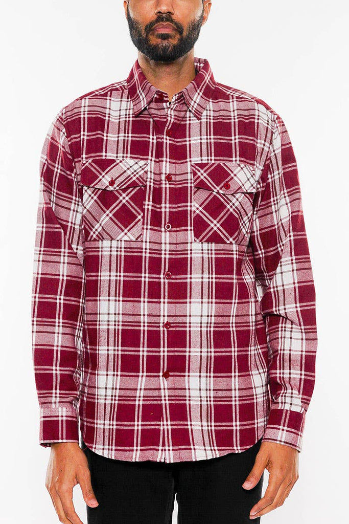 UNISEX LONG SLEEVE FLANNEL BUTTON DOWN SHIRT